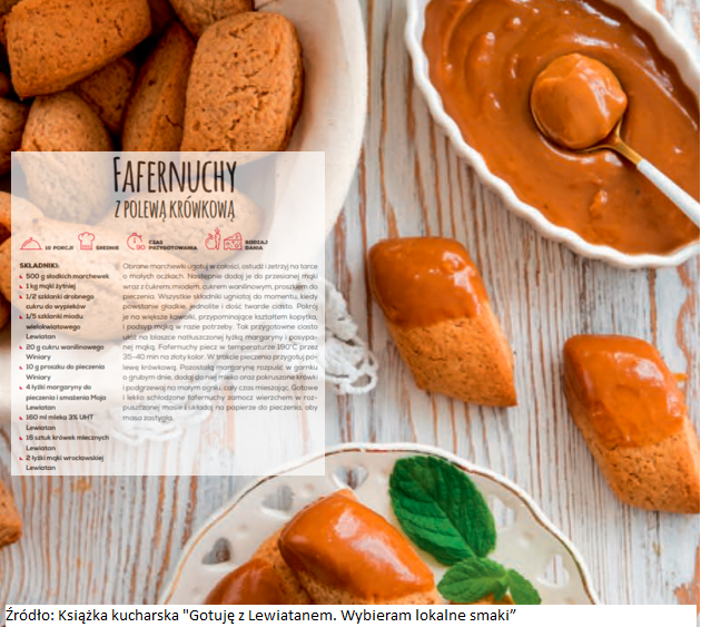 Książka „Gotuję z Lewiatanem. Wybieram lokalne smaki” to 80 przepisów z 10 kulinarnych regionów Polski. Poświęcona jest polskim tradycjom oraz obyczajom związanym z kulinariami. To zbiór ciekawostek, nawiązujących do naszych zwyczajów, tradycji i historii kraju. Znajdziemy w niej smakołyki z domowej spiżarni i garść́ inspirujących przepisów, m.in. na domowy ocet czy przetwory z wykorzystaniem dzikich roślin. Każdy przepis wzbogacony został o listę składników, z podpowiedzią co warto wrzucić do sklepowego koszyka. Dla miłośników gotowania atrakcją będę receptury na domowe nalewki, dżemy i przetwory oraz wiele cennych wskazówek na temat składników w nich zawartych np. na temat dzikich roślin, takich jak chrzan, czy jarzębina.