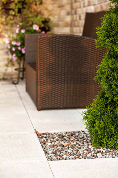 Powierzchnia płyt Rock odwzorowuje ziarnistą fakturę naturalnego kamienia. Otrzymuje się ją ze specjalnie wyselekcjonowanych gatunków kruszyw dodanych do górnej warstwy płyty. Za sprawą barw z grupy jesienne inspiracje (jasny beż, beż, brąz) sprawdzą się nie tylko pod względem estetycznym, ale również użytkowym. Wykorzystana przy ich produkcji technologia śrutowania polega na obijaniu z dużą częstotliwością powierzchni płyt małymi metalowymi kulkami. W efekcie powstaje delikatna, chropawa powierzchnia, która daje doskonałą przyczepność dla stóp, a wizualnie zbliżona jest do naturalnego kamienia. Czy będzie to taras, ścieżka w ogrodzie, deptak czy miejski plac – proste kwadratowe i prostokątne płyty, świetnie wkomponują się w otoczenie. Niewielka waga płyt pozwala też montować je na wspornikach w praktycznej technologii tzw. tarasu wentylowanego.