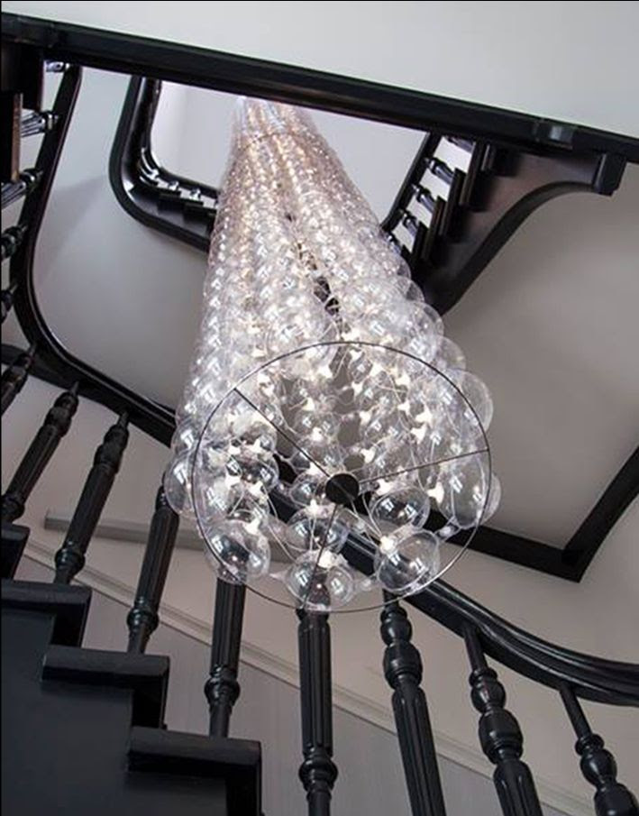 Wisząca konstelacja High Tower może być rozbudowana nawet do wysokości kliku pięter! Stojąca wersja również może nieco urosnąć (w wersji na zamówienie). Możliwość zmiany wielkości i barwy światła sprawia, że lampa High Tower to nieszablonowe, a zarazem praktyczne rozwiązanie oświetleniowe! Z powodzeniem można je też łączyć z innymi modelami z kolekcji Bubbles, np. plafonem Half-Megastar o średnicy 150 cm.