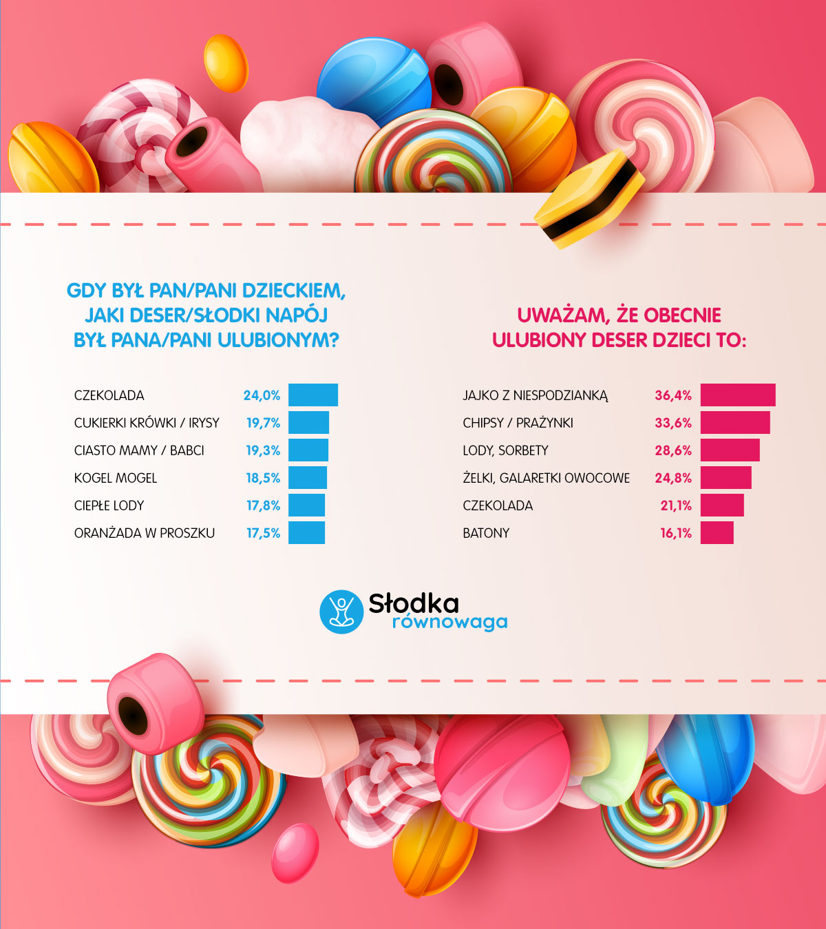 Dzieci kochają słodycze w każdej postaci. To coś, co łączy pokolenia. Nadchodzące święta – Dzień Matki i Dzień Dziecka to dobry pretekst, aby dowiedzieć się więcej na temat tego, jakie słodycze jedliśmy my jako dzieci, a co nasze pociechy lubią zajadać obecnie. To dobra okazja by spędzić wspólnie czas i dowiedzieć się czegoś o sobie nawzajem. Pamiętajmy jednak, aby celebrując dobre chwile zachować równowagę. Wspólne jedzenie czekolady, domowych ciast czy innych słodkości warto, by wiązało się z dobrymi chwilami, pomagało budować relacje i stanowiło przyjemny element wyjątkowych okazji. Ważny jest umiar, by cieszyć się ze słodkich smakołyków w diecie – szczególnie dziś, kiedy dostęp do słodyczy jest praktycznie nieograniczony.