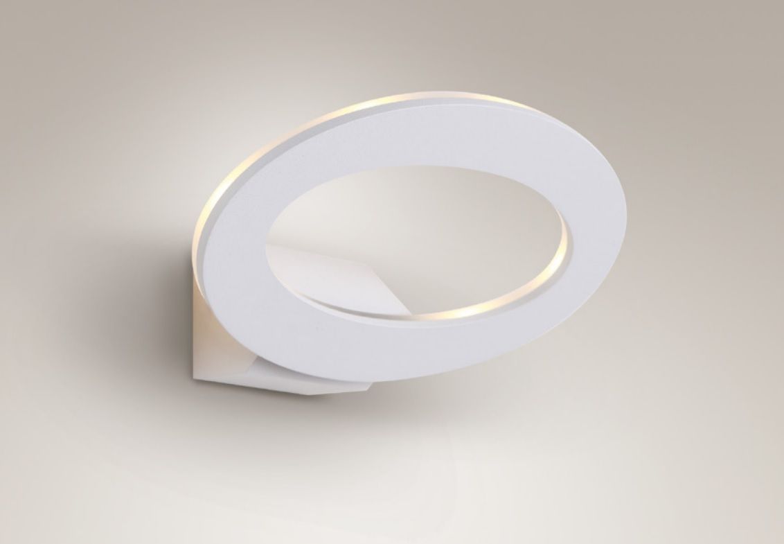 z jasnym kloszem, wykonany z metalu pokrytego chromem i mierzący 150 cm wysokości, jak i nieco wyższą, bo liczącą 156 cm, lampę Napoleon. Natomiast wśród opraw ściennych intryguje linia Tigra ? seria lamp ledowych wykonanych z aluminium, dostępnych w wersji białej oraz czarnej, które interesują głównie ze względu na swoją nietypową, choć mimo wszystko prostą bryłę. Podobnym rozwiązaniem jest model Ovale, który znajdzie zastosowanie zarówno w łazience, biurze, jak i minimalistycznym salonie.